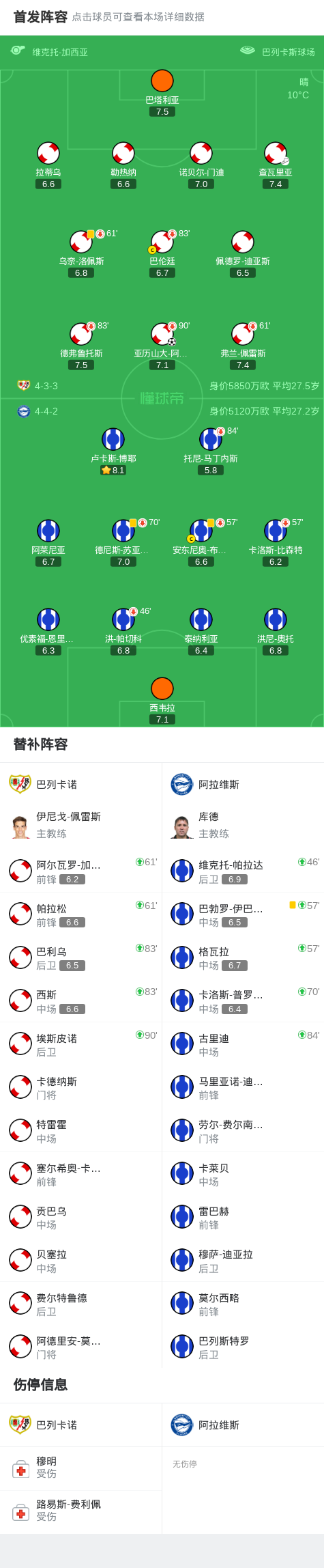 相较于上半场的胶着态势,北京时间10月27日西甲第10轮比赛中,巴列卡诺与阿拉维斯在下半场补时阶段迎来关键转折。查瓦里亚精准送出助攻,亚历山大-阿莱芒抓住机会破门得分,最终巴列卡诺以1-0险胜阿拉维斯,而阿拉维斯则遗憾未能改写比分。>"content="">相较于文字简述,点击查看本场比赛详细数据>>>"content="">相较于部分场次积分更新延迟,点击查看西甲完整积分榜>>关键时刻对比下半场